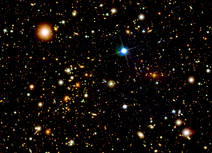 Credit: X-ray: NASA/CXC/SAO; Optical: NASA/STScI, Magellan/U.Arizona; Lensing Map: NASA/STScI, ESO WFI, Magellan/U.Arizona